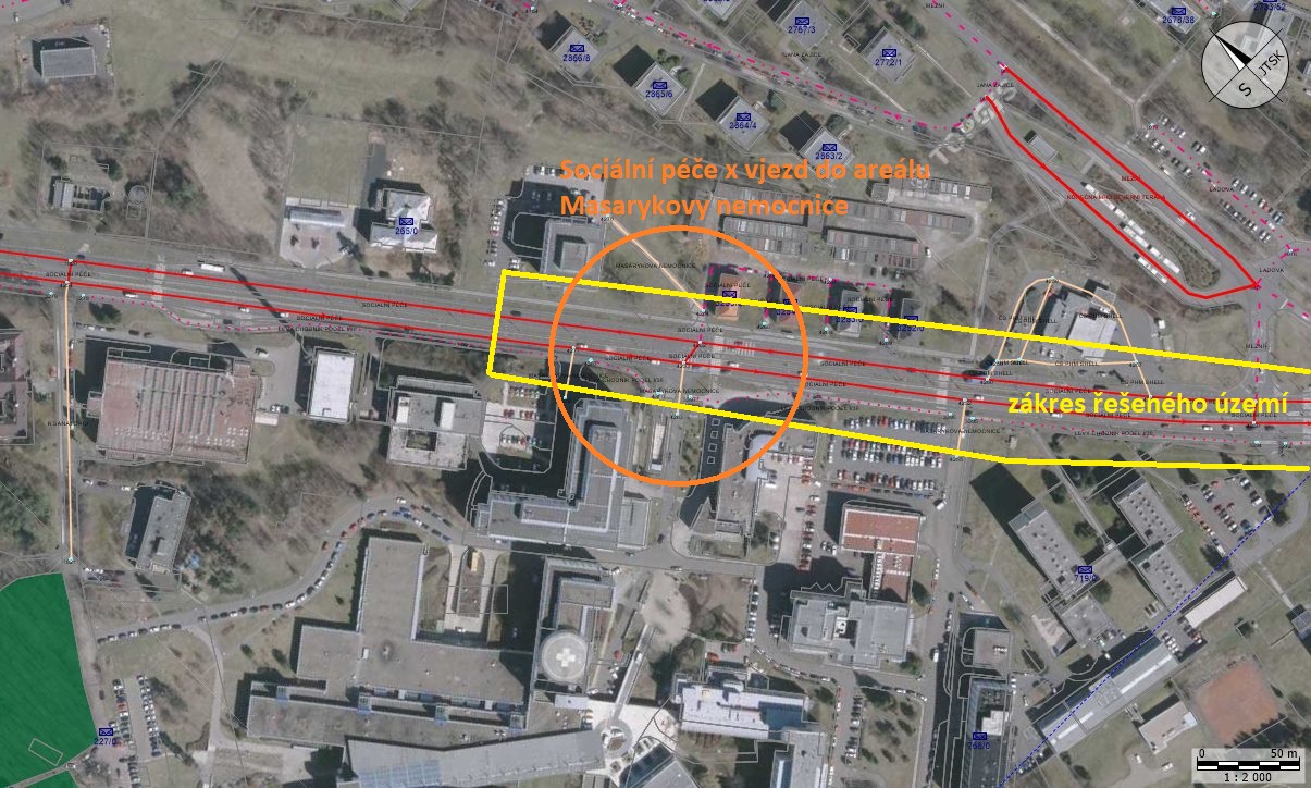 Stručný popis předmětu: Předmětem této veřejné zakázky malého rozsahu je zpracování projektové dokumentace včetně zajištění územních souhlasů a sloučeného územního a stavebního povolení pro zřízení uceleného koordinovaného tahu na silnici I. třídy č. I/30 v ul. Sociální péče, Ústí nad Labem, a to konkrétně v úseku Krušnohorská – Mezní – hlavní vjezd do areálu Masarykovy nemocnice. Dále popsaná opatření mají za úkol zvýšení bezpečnosti účastníků silničního provozu, zejména pak chodců na průtahu silnice I. třídy č. I/30 v blízkosti areálu Masarykovy nemocnice.